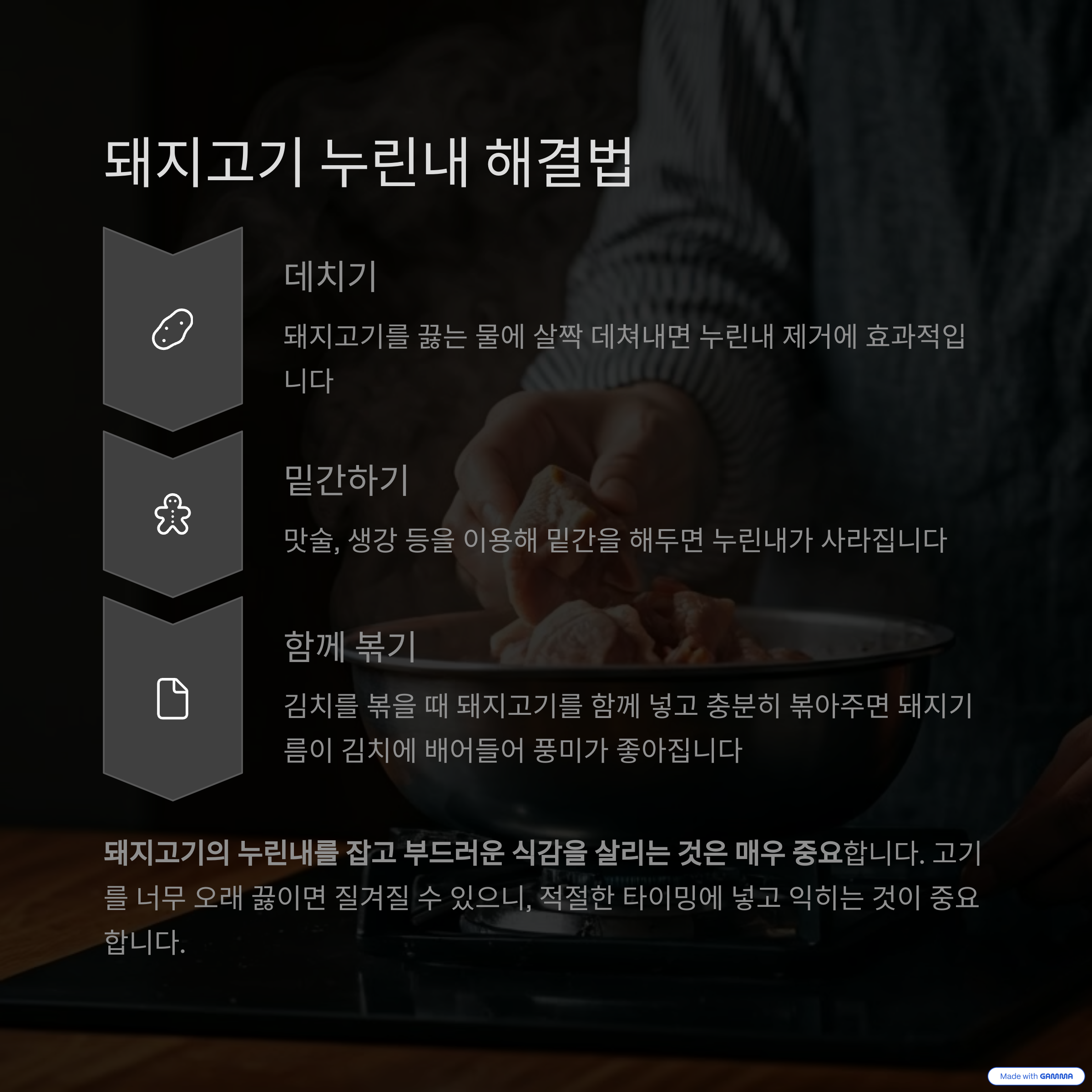 돼지고기 투입 타이밍과 조리법