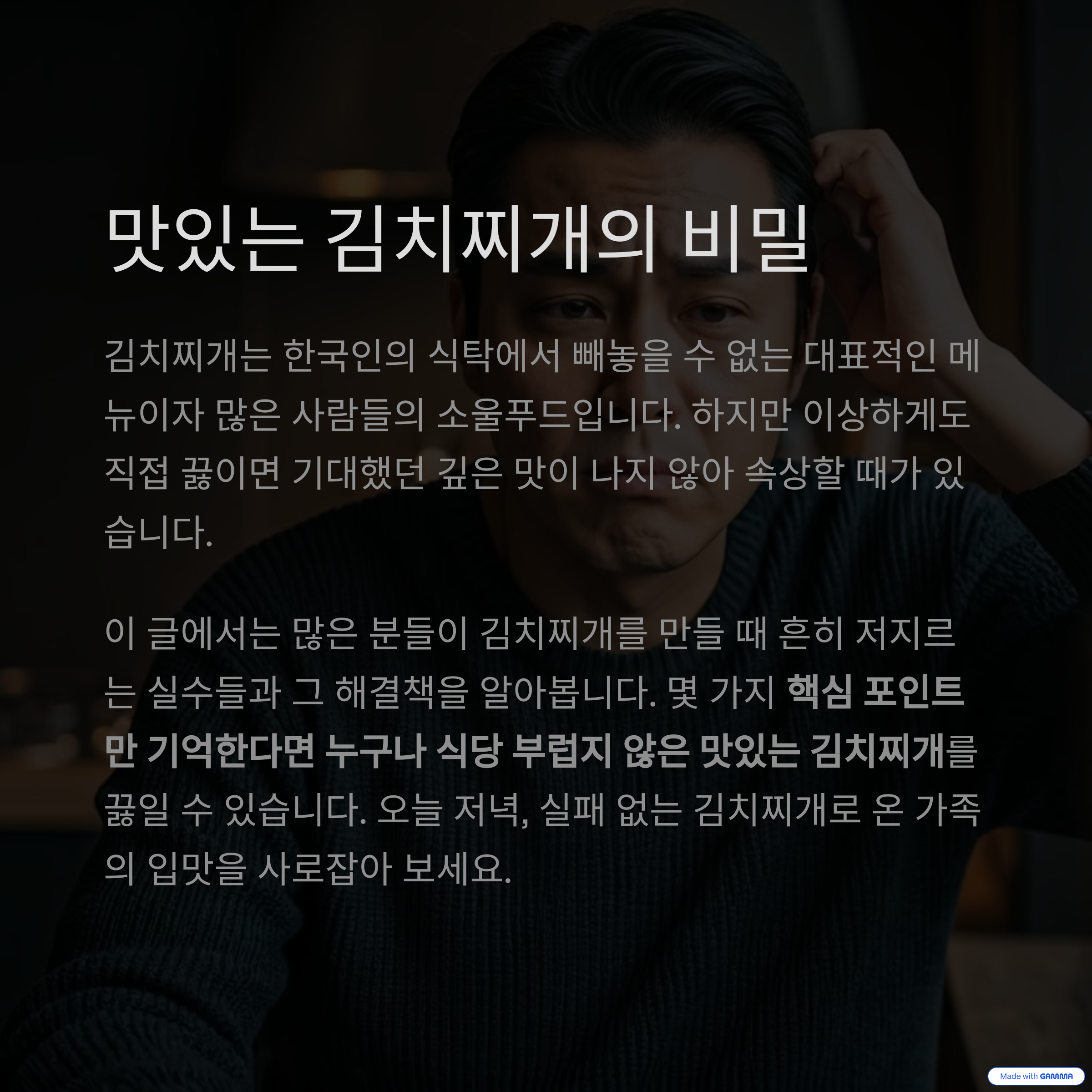 깊고 진한 국물 맛, 명품 김치찌개 비법 전수합니다