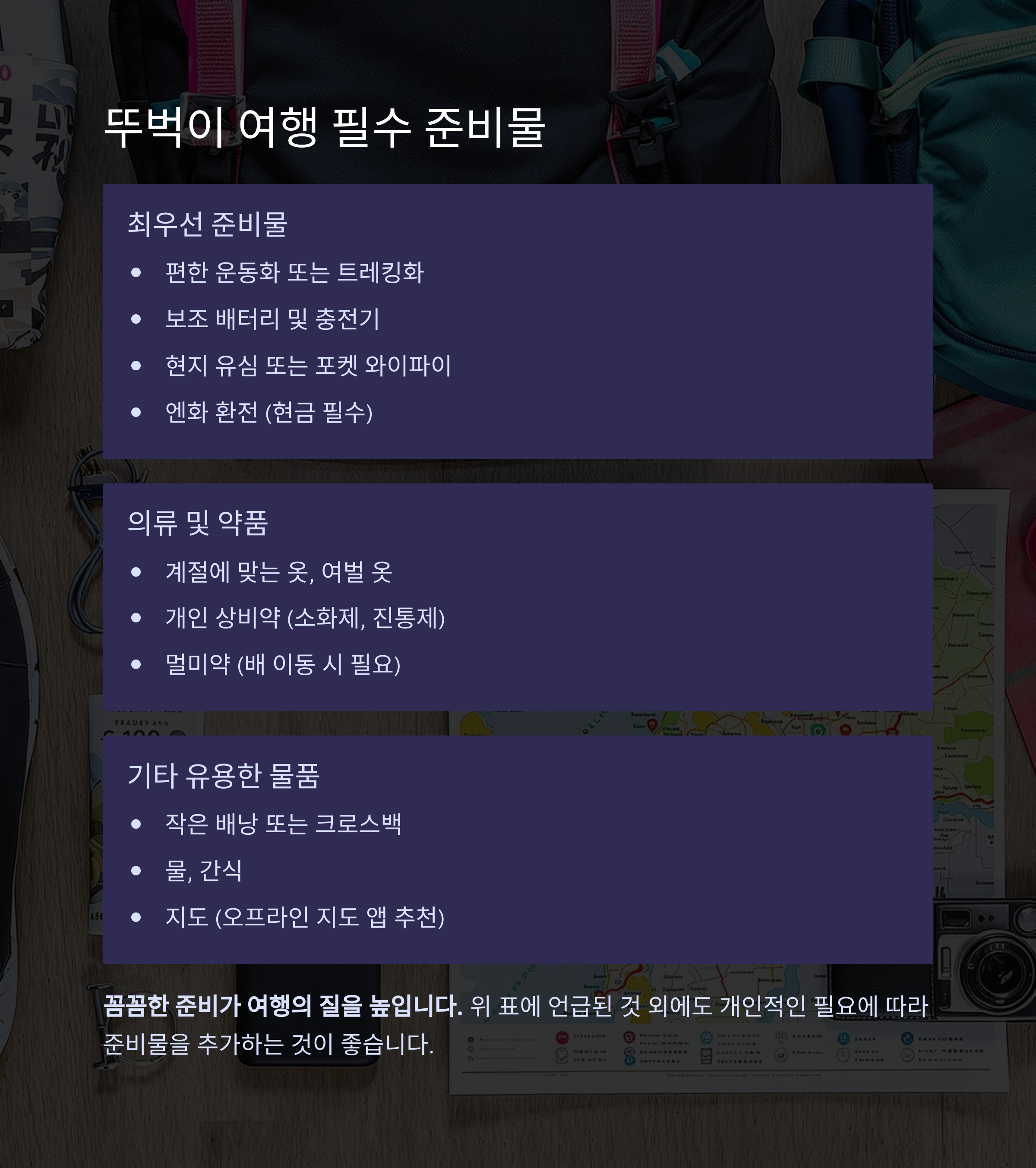 꼼꼼한 준비가 여행의 질을 높입니다.