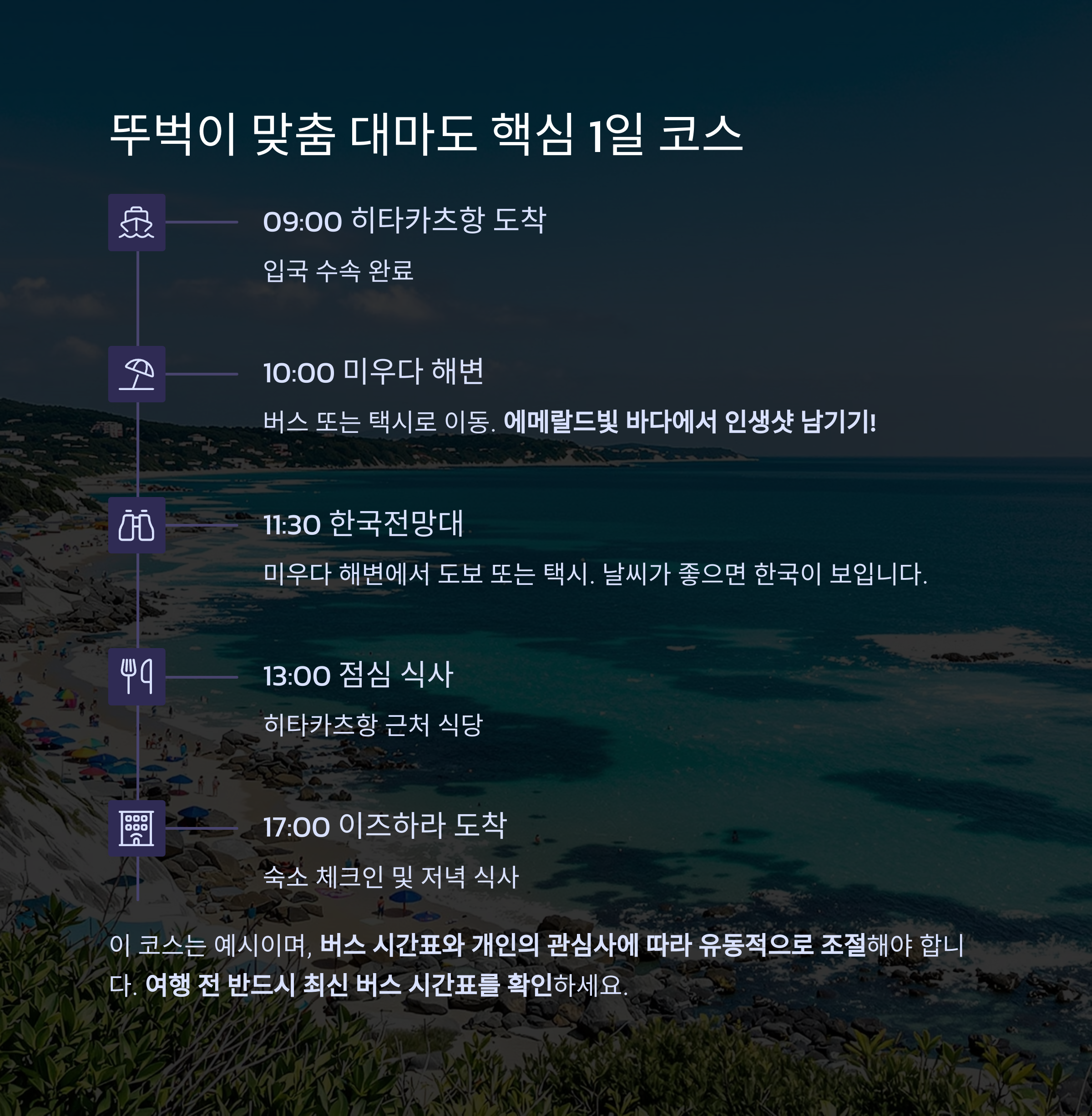 여행 전 반드시 최신 버스 시간표를 확인하세요.