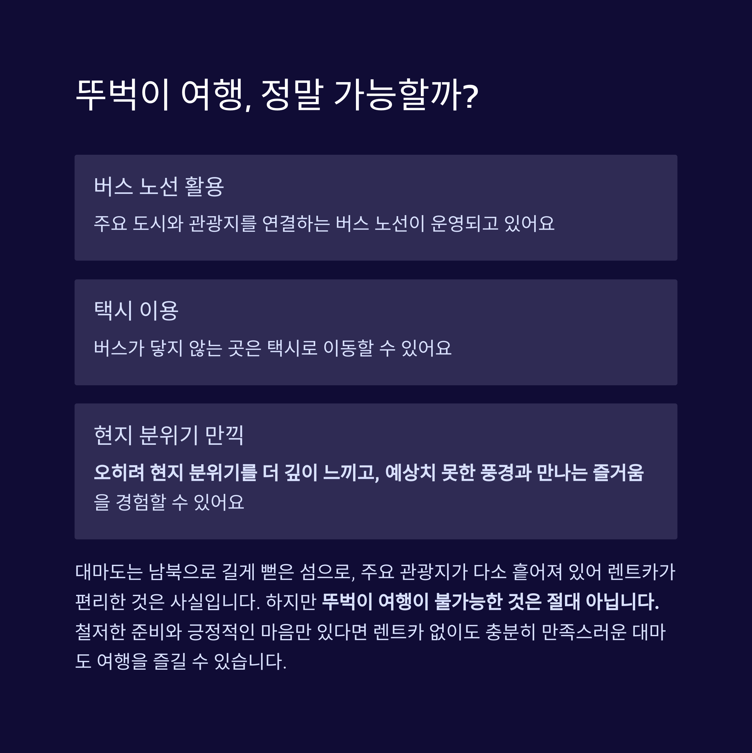 철저한 준비와 긍정적인 마음만 있다면 렌트카 없이도 충분히 만족스러운