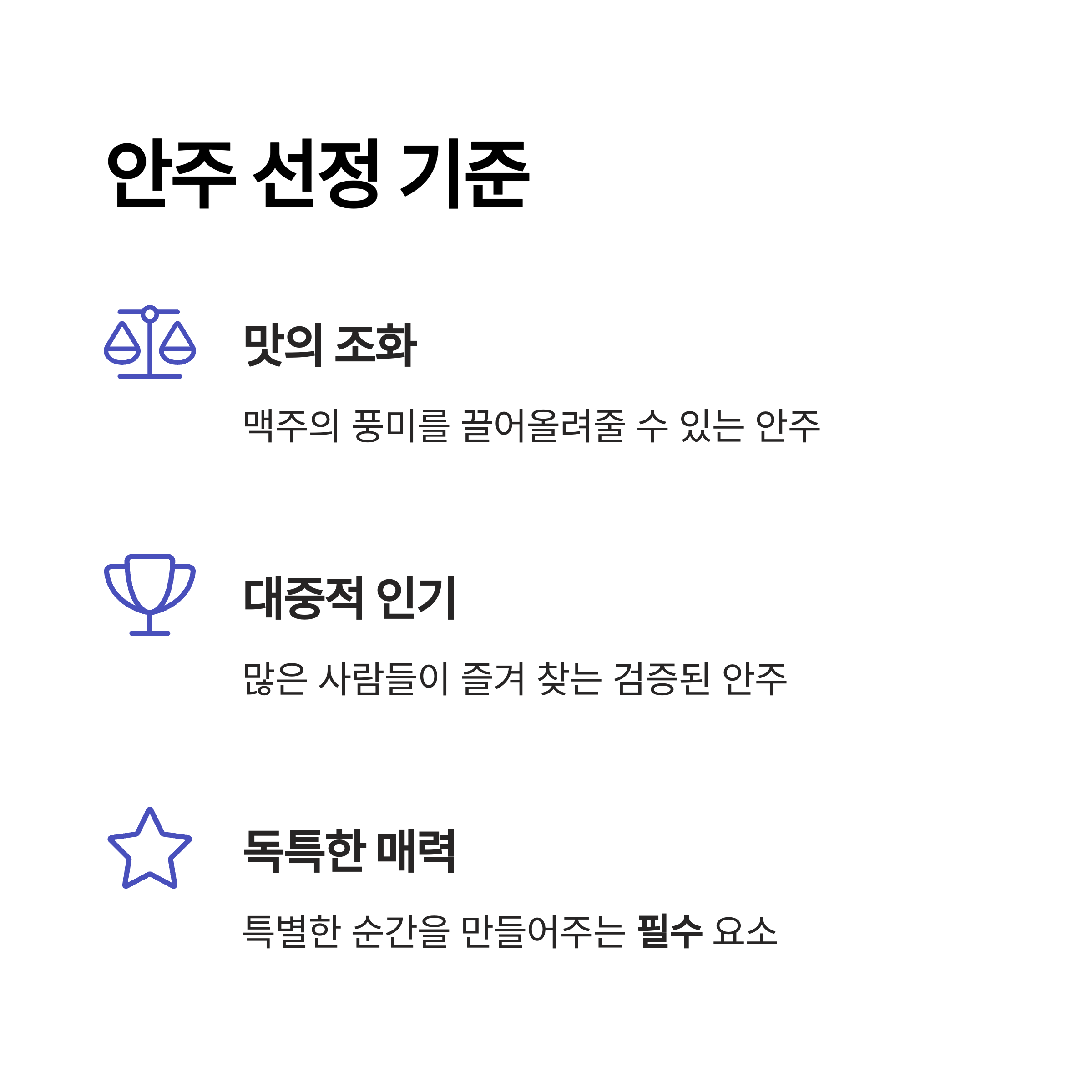 궁금해요! 이번 안주 선정 기준은 무엇인가요?