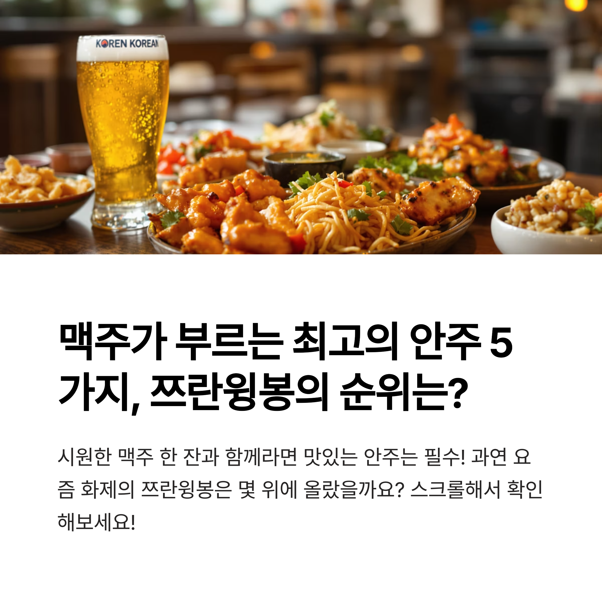 맥주와 찰떡궁합! 안주 TOP 5 대공개