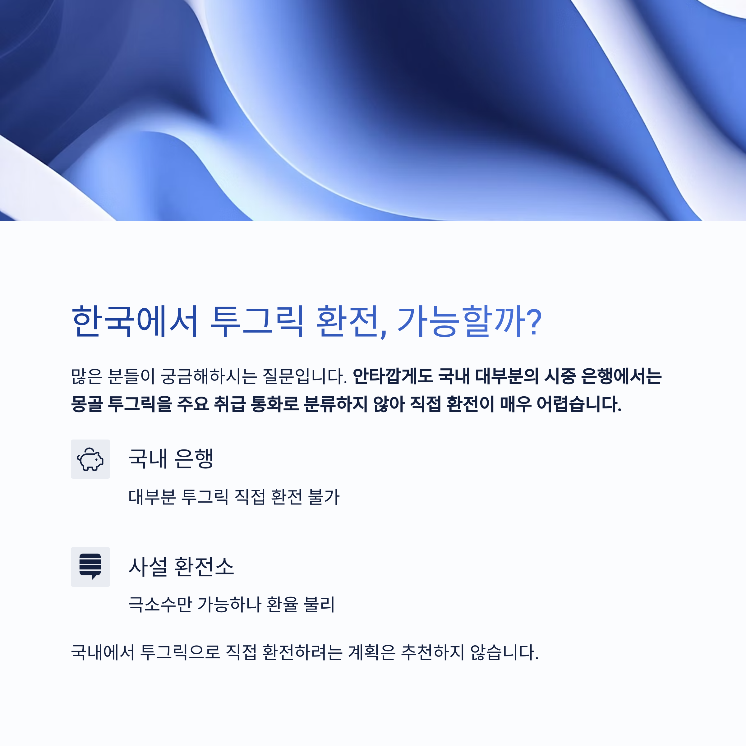 많은 분들이 "한국에서 바로 몽골 투그릭으로 환전할 수 있나요?"라는 질문을 하십니다.