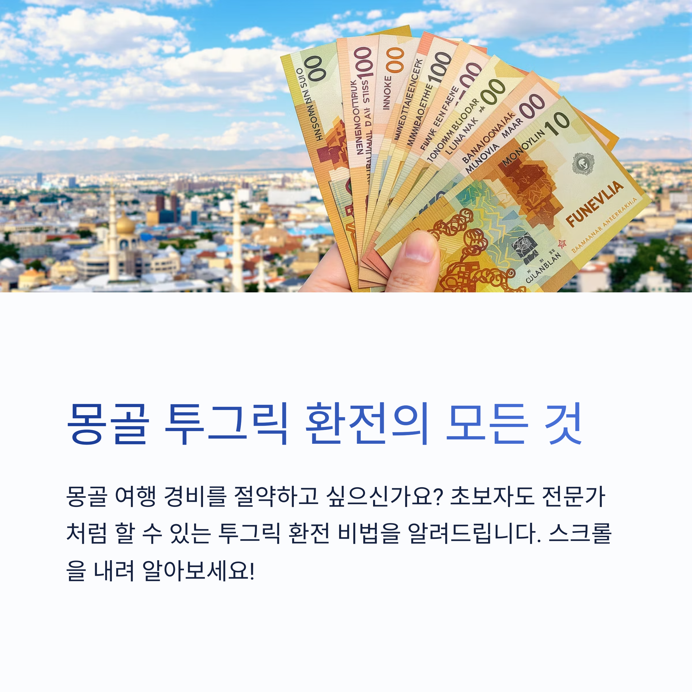 몽골 여행을 계획 중이시라면 가장 먼저 고민하게 되는 것 중 하나가 바로 현지 화폐인 투그릭(MNT) 환전일 것입니다.