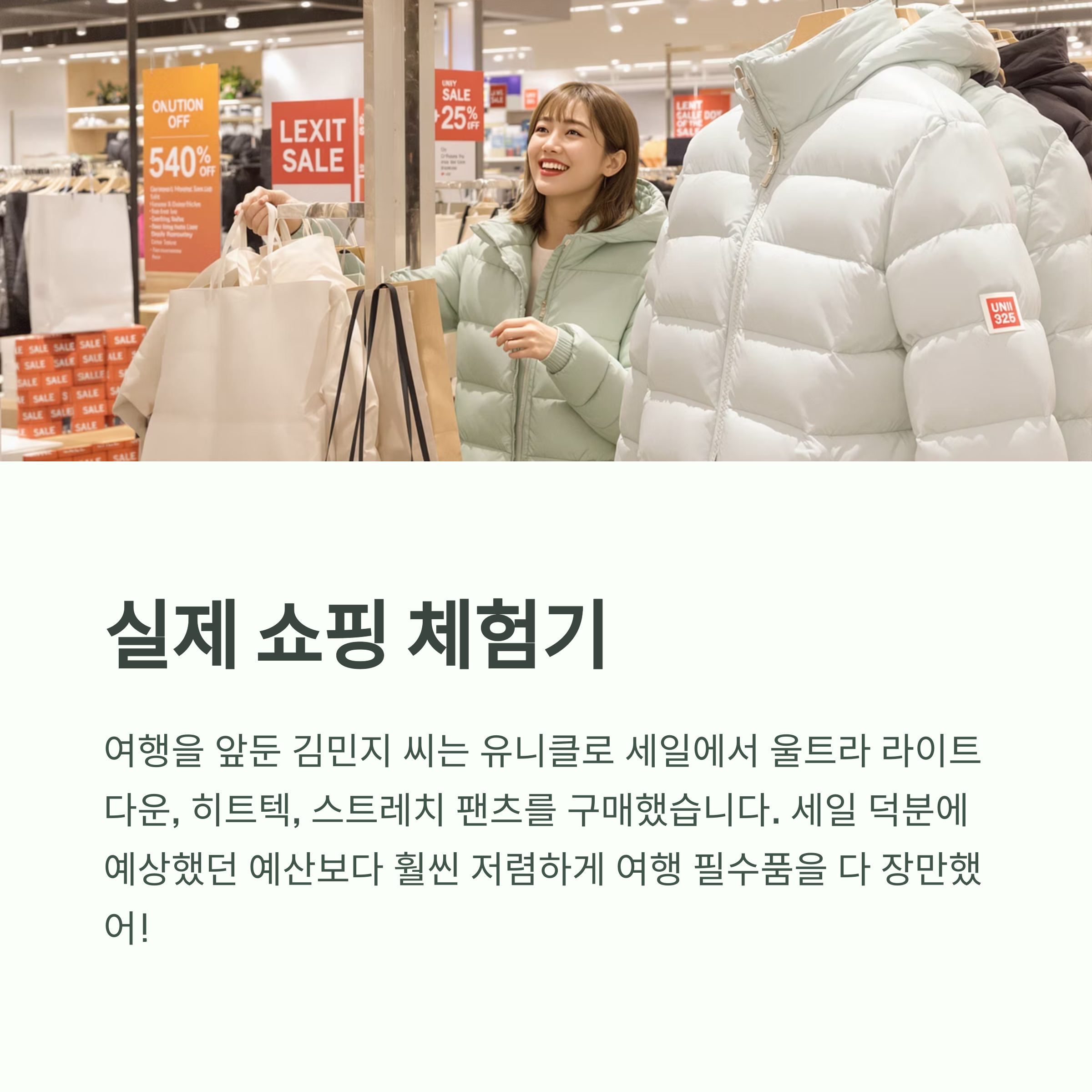 김민지 씨의 유니클로 세일 여행 준비 체험기