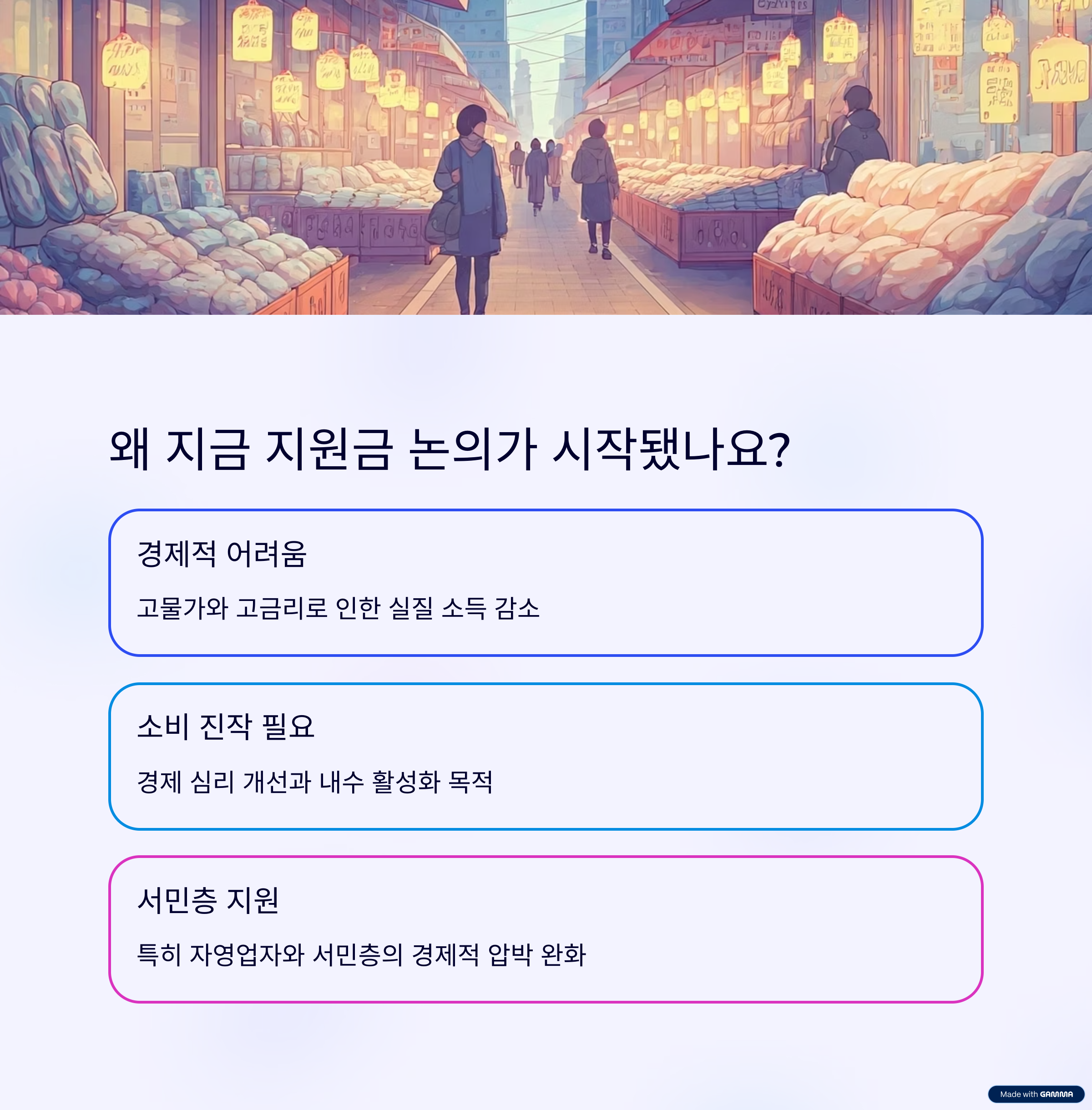 핵심은 국민 개개인의 어려움을 덜고, 소비를 촉진하여 경제 전반에 활력을 불어넣는 것입니다.