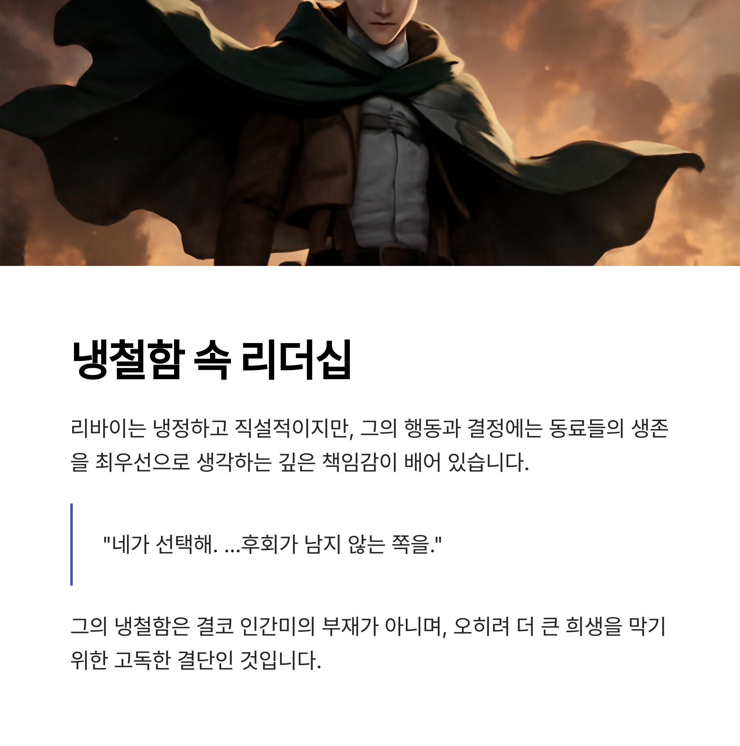 이처럼 리바이의 성격은 단순한 개인의 기질을 넘어,