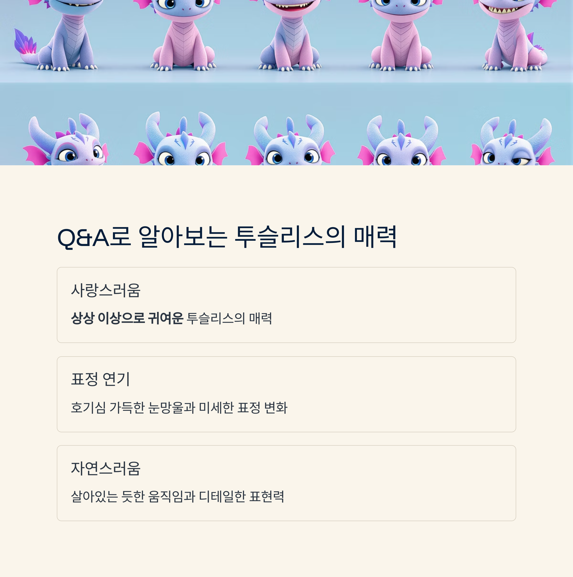 ### Q&A로 알아보는 실사 투슬리스의 매력