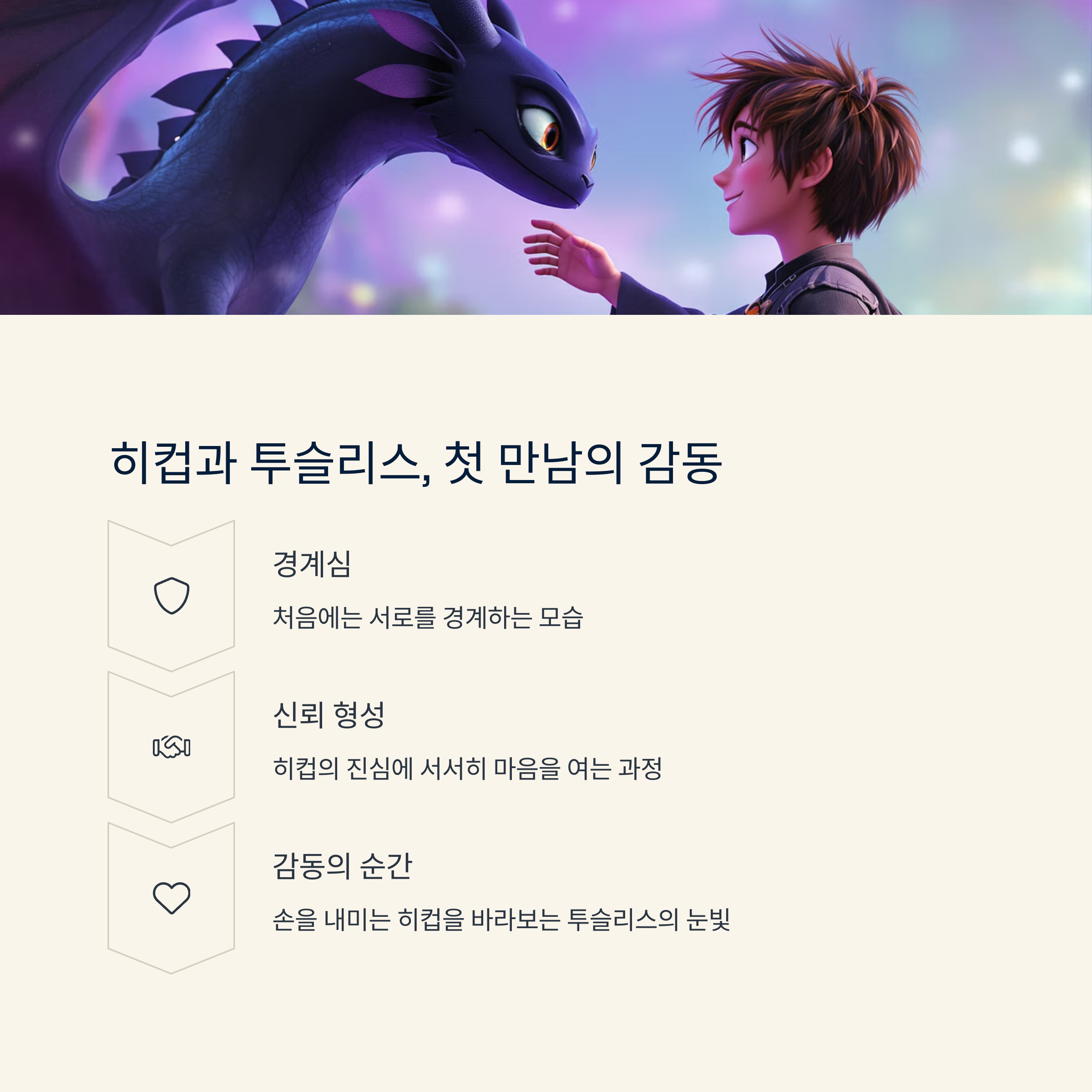 영화 속에서 히컵과 투슬리스가 처음으로 교감하는 장면은 여전히 잊히지 않습니다.